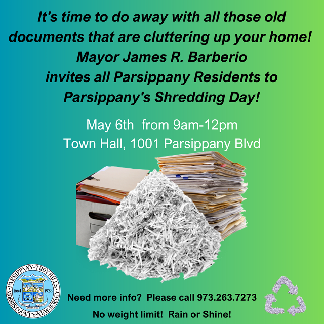 Mayor James R. Barberio invites all Parsippany Residents to Parsippany's Shredding Day!